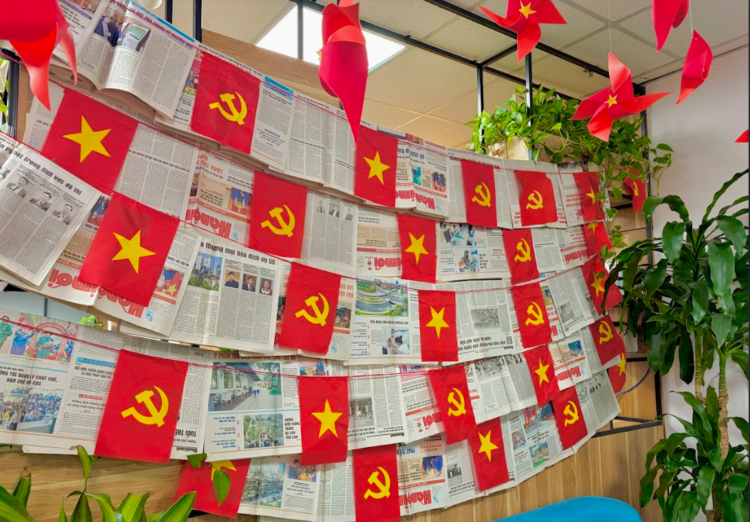 From the reception area to workspaces and departments, the image of the red flag with a yellow star has created a fresh, warm, and emotional atmosphere. Every corner of ANT Group is not only beautifully decorated, but also carries messages of gratitude, pride, and appreciation for the peaceful values preserved by previous generations.